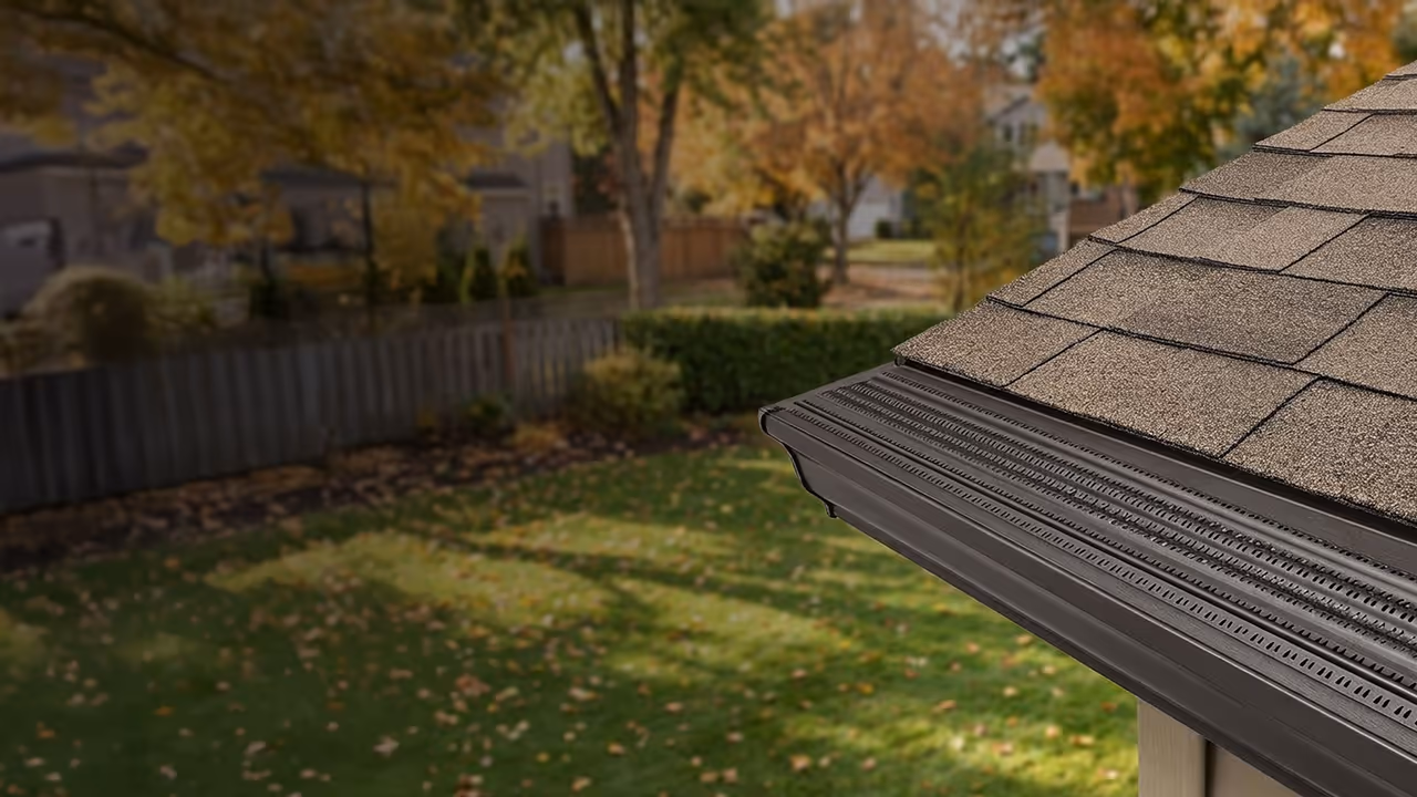 Vinyl-and-bronze trim homes. The bronze finish disappears against bronze gutters.
